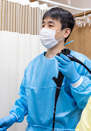 私がこのクリニックを選んだのは、内視鏡検査が沢山できるところに惹かれたからです。特に内視鏡検査やポリープ切除をしている時にやりがいを感じていますが、街のクリニックだけあって様々な治療に携われるのも、働きがいのある部分ですね。その分、医師としての経験が問われるので、未経験の方には厳しい職場といえるかもしれません。