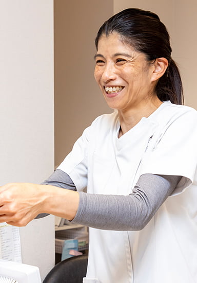 私がこのクリニックでの入職を考えたのは、自分のスキルを活用できそうであり、家から近い立地や常勤募集という点に魅力を感じたからです。一緒に働くスタッフは皆活気があって仲の良い、雰囲気の良い職場ですよ。